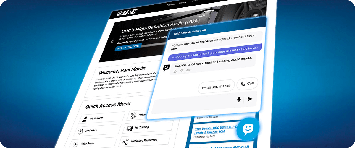URC, a global leader in smart home automation, faced challenges in meeting the information needs of their vast network of dealers. The traditional support channels, unable to provide timely and effective solutions, were hindering dealer satisfaction and overall support system efficiency. Dealers required immediate access to information about URC devices, heightening the urgency for a more responsive and efficient support mechanism.