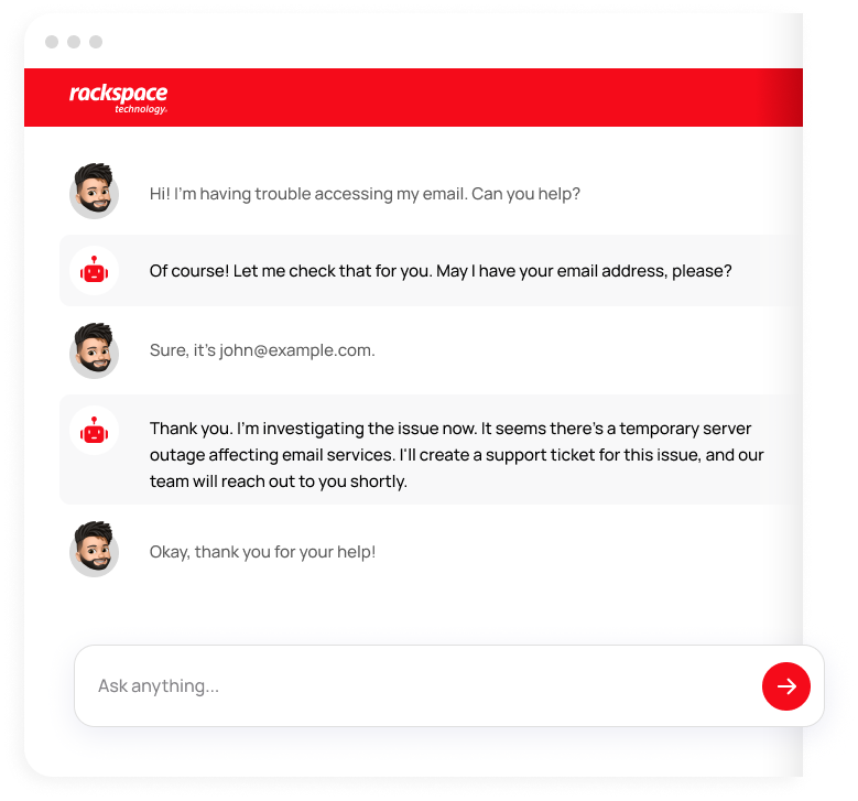 LeewayHertz developed an LLM-powered chatbot for Rackspace to optimize their internal support operations, accelerate response speed and elevate query resolution effectiveness. Leveraging NeMo Guardrails and other robust AI advancements, the chatbot assists users in performing specific tasks like creating support tickets and reducing the manual workload of users.
